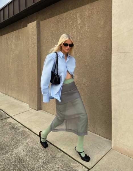 Як поєднати комфорт та стиль? Відповідь проста: кольорові колготки – тренд осені 2025. Фіолетові, блакитні, білі, з різними візерунками та мереживні – їх можна поєднувати зі спідницями та сукнями. А якщо зверху надіти пальто, то вийде неймовірно модний образ, що зігріває.
