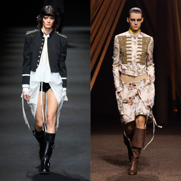 Однак справжній парад гусарських жакетів розгорнувся в колекціях сезону весна 2025-2026, пропонуючи найрізноманітніші інтерпретації. Найбільш класичний варіант представив бренд Ann Demeulemeester у чорному кольорі із золотими гудзиками та такими ж погонами. Kenzo показав вогненно-червоний жакет з атласного матеріалу, що стилізується з довгими рукавичками. Колекція Alexander McQueen виділилася різноманітністю візерунків: деякі жакети були виготовлені з тканини з квітковим принтом; вийшло своєрідне поєднання сили мундира та ніжності матеріалу.