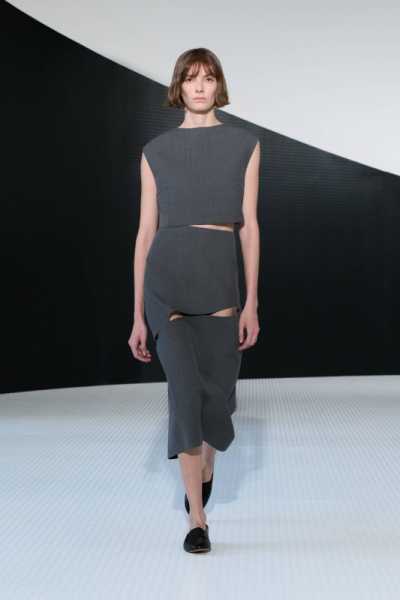 Дует Міуччі Пради та Рафа Сімонса продовжив свої пошуки легкості у світі, перевантаженому інформацією, представивши колекцію, де знайомі архетипи трансформувалися у щось нове. Показ на глянсовому помаранчевому подіумі розпочався з переосмислених військових силуетів, які стали одою багаторічної історії пані Пради, яка створює уніформу для креативних та нестандартно одягнених жінок. Офіскор постав у несподіваних інтерпретаціях: сорочки могли бути повністю розстебнуті або грайливо заправлені в спідню білизну.