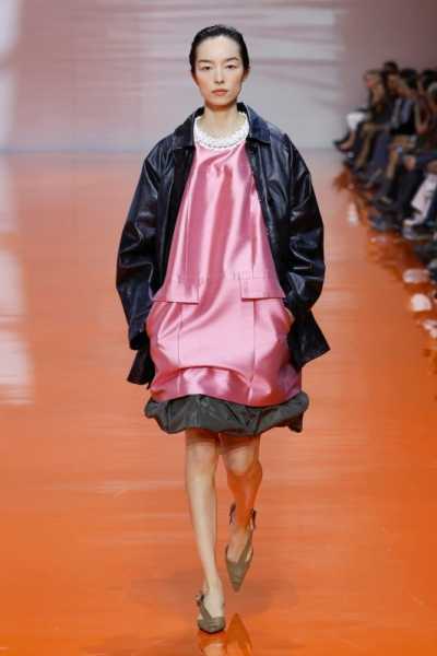 Спідниці-балони повернулися на подіум у новому прочитанні: вони виконували функцію спідниці, зверху якої були одягнені атласні сукні та оверсайз-жакет ніби з чоловічого плеча. Яскрава палітра кольорів – від мандаринового до насичених відтінків жовтого – підкреслювала сміливість і свободу колекції, яка навмисно ставила під сумнів загальноприйняті уявлення про конвенційну красу одягу.
