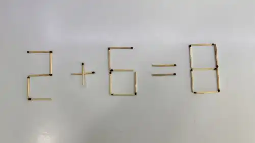 Отримайте маааленьку підказку. Зверніть увагу на цифру 8. Вона так і проситься, щоб її трішки "спростили". Якщо прибрати з неї один сірничок, вона стане 6.